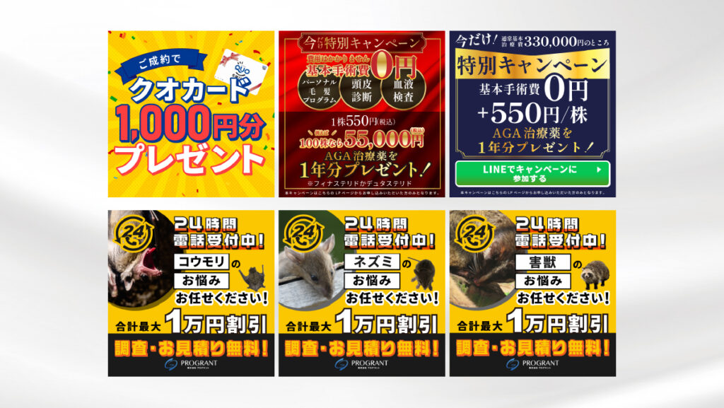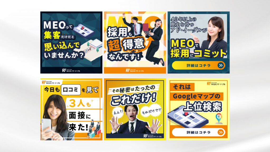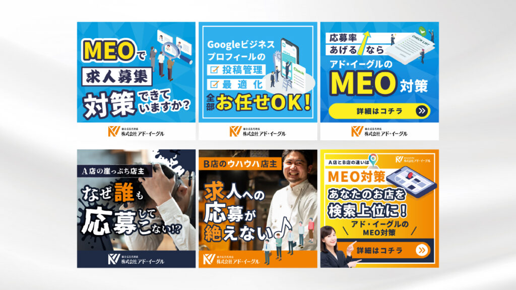 【制作意図】各種、提示いただいたライティングやターゲット層、広告媒体などの情報を基に内容が瞬時に理解しやすく、クリックしやすいデザインを意識して制作いたしました。